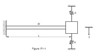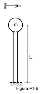 1.7.-Una barra vertical de longitud L y rigidez de flexión EI sostiene una masa m al extremo, como se muestra en la figura P1-9. Depreciando la masa de la barra, deduzca la la ecuación deferencial para oscilaciones horizontales pequeñas y encuentre la frecuencia natural. Concederé que el efecto de la gravedad es insignificante y que los efectos no lineales pueden ser despreciados.