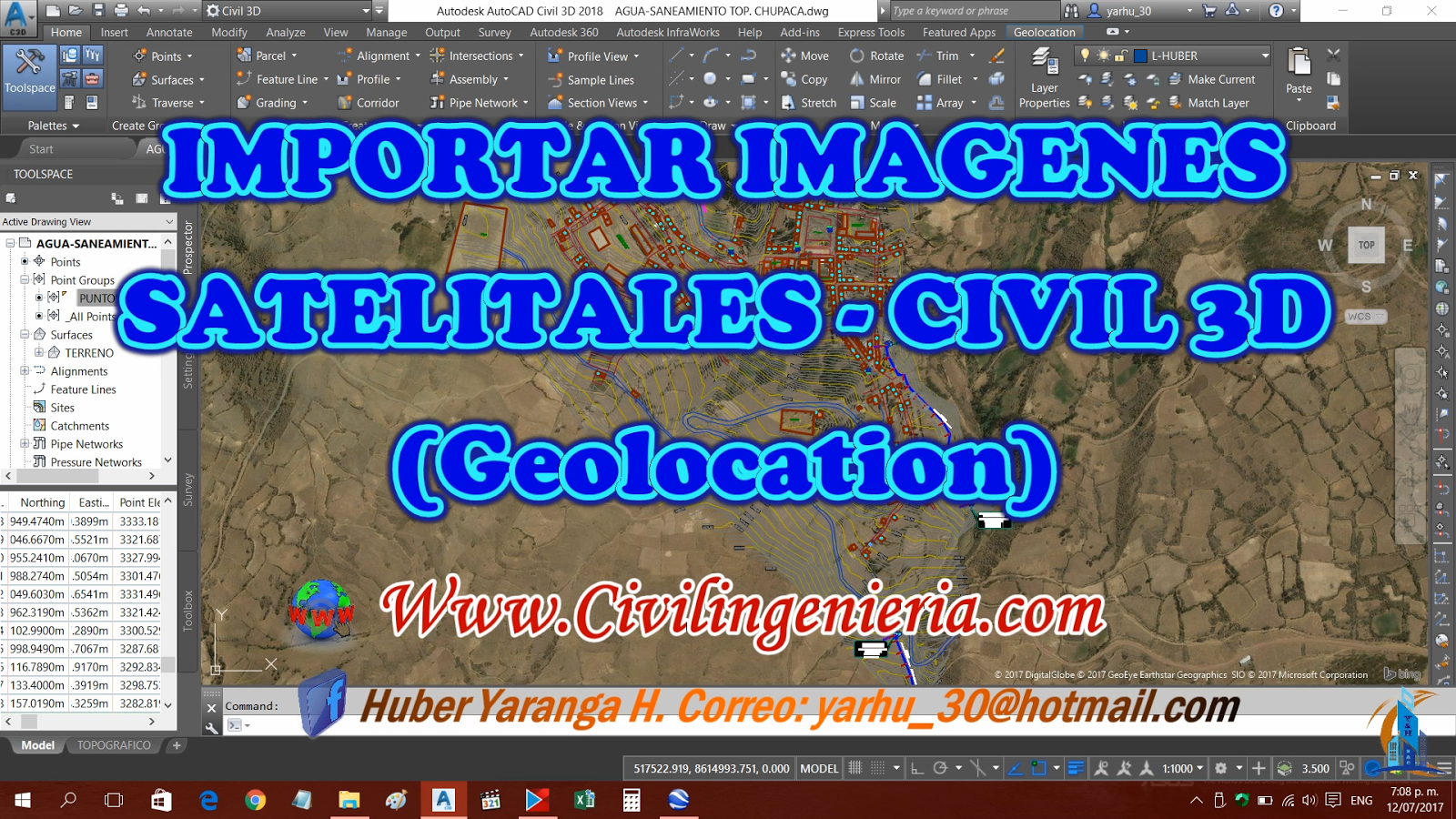 Al importar imágenes satelitales al civil 3D-2018, nos facilita realizar trabajos para diferentes estudios, nos permite verificar la georreferenciacióncorrecta de nuestro proyecto en la etapa de evaluación.