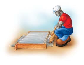 El concreto también puede curarse aplicando un COMPUESTO DE CURADO que disminuye la pérdida de agua. Este debe aplicarse luego del acabado. Siempre siga cuidadosamente las instrucciones del fabricante. Los compuestos de curado pueden aplicarse como un rociador o con brocha.