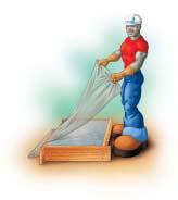 Otra manera de curar el concreto consiste en cubrirlo con HOJAS DE PLÁSTICO para hacer más lenta la pérdida e agua. Este método es fácil y económico. El único problema es que las hojas pueden causar que el concreto sea más oscuro en algunos lugares. Para evitar esto mantenga el concreto UNIFORMEMENTE húmedo. Las hojas puede sujetarse para evitar que se vuelen y que la superficie del concreto se seque. Las hojas pueden traslaparse y pegarse y/o mantenerse abajo con arena, madera o ladrillos. Siempre verifique por debajo del plástico de vez en cuando para asegurarse de que el concreto esté UNIFORMEMENTE húmedo. Si se siente seco, rocíelo con agua y vuelva a poner cuidadosamente las hojas de plástico. La condensación por el lado interior del plástico es un buen signo.