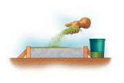 Espolvoree 2/3 del material seco en la superficie de concreto, esparciéndolo uniformemente con una llana. Déjelo por un minuto más o menos para que absorba algo de humedad. Espolvoree el último tercio del material seco en el concreto en ángulos rectos a la primera aplicación y una vez que se haya humedecido, espolvoréelo y extiéndalo uniformemente con una llana. Las dos aplicaciones ayudan a dar un color y un espesor más uniformes.